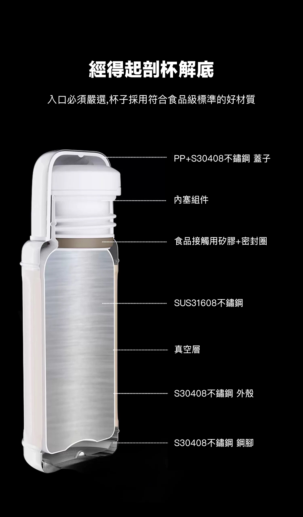 材質 : 316不銹鋼、食品級PP、食品級矽膠