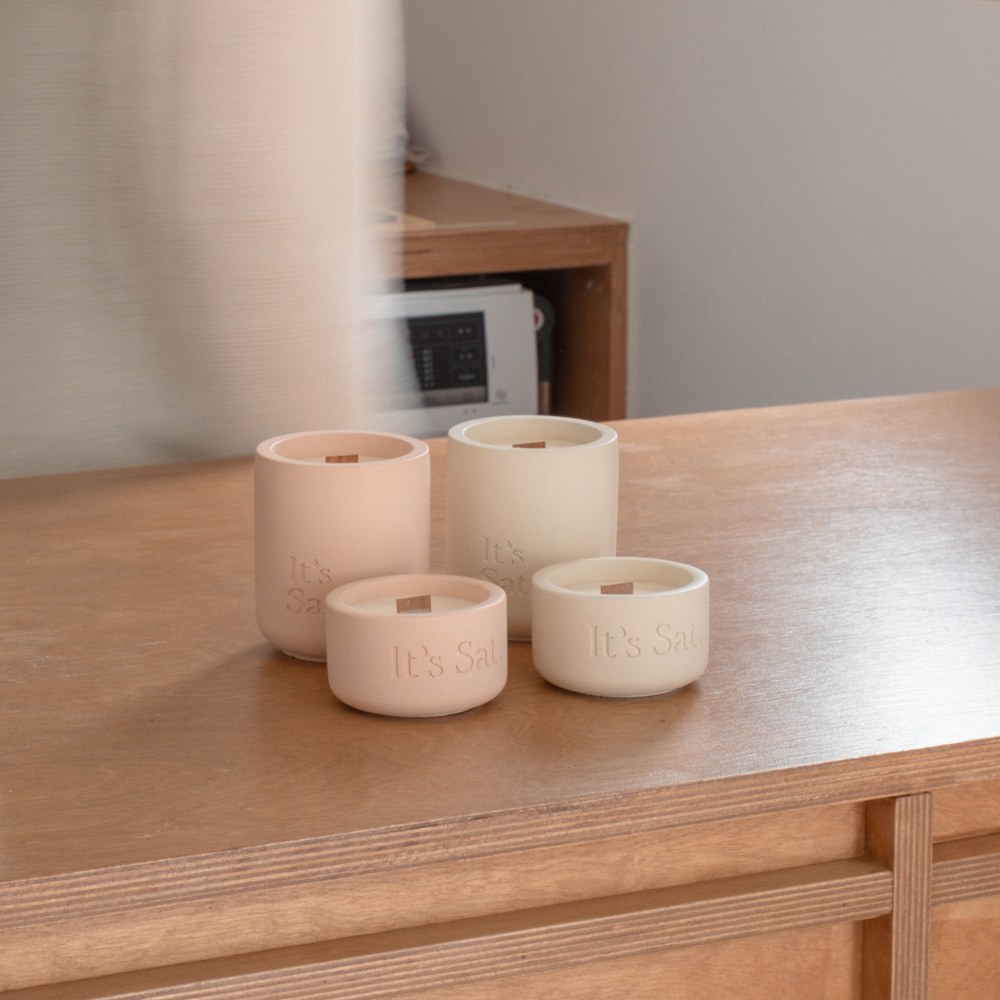 2. 使用水泥杯製作,具有獨特的滲透性,使用數次後會自然帶出蠟材裏面的香氛精油至杯身表面,